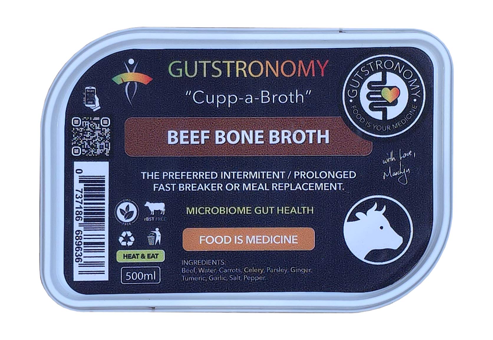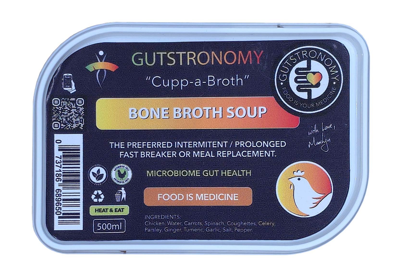 Slowly cooked over 12 hours for optimal nutrient extraction, and packed with flavour from a carefully selected array of spices, this "heat-and-drink" broth is not only delicious, but wholesome and nourishing too.